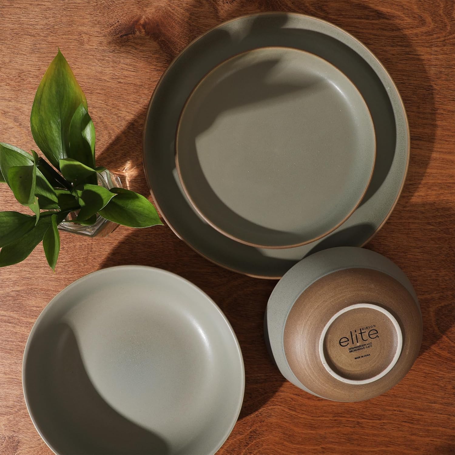Gibson Elite Sunveil 16 Piece (Service for 4) Plates and Bowls Reactive Glaze…
