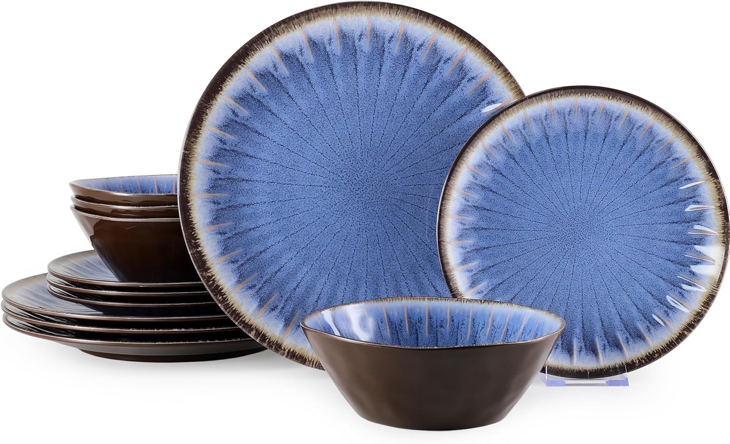 Gufaith Melamine Dinnerware Sets for 4,12 Pcs Party Plates and Bowls Sets,Outdoor Use Harvest Dinner Dishes Set,Great for RVs Camping,Lightweight Unbreakable,Dishwasher Safe,Sage Green