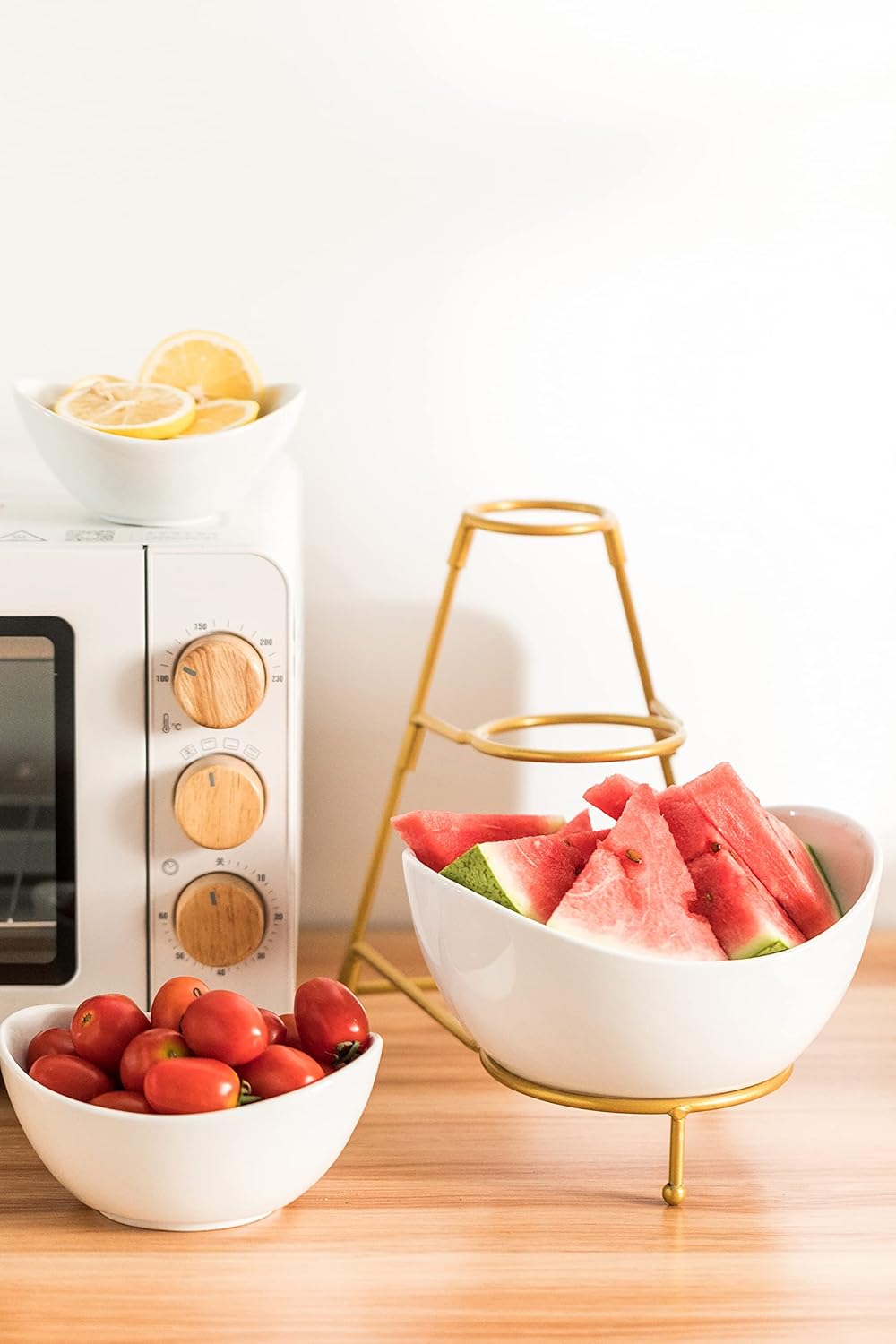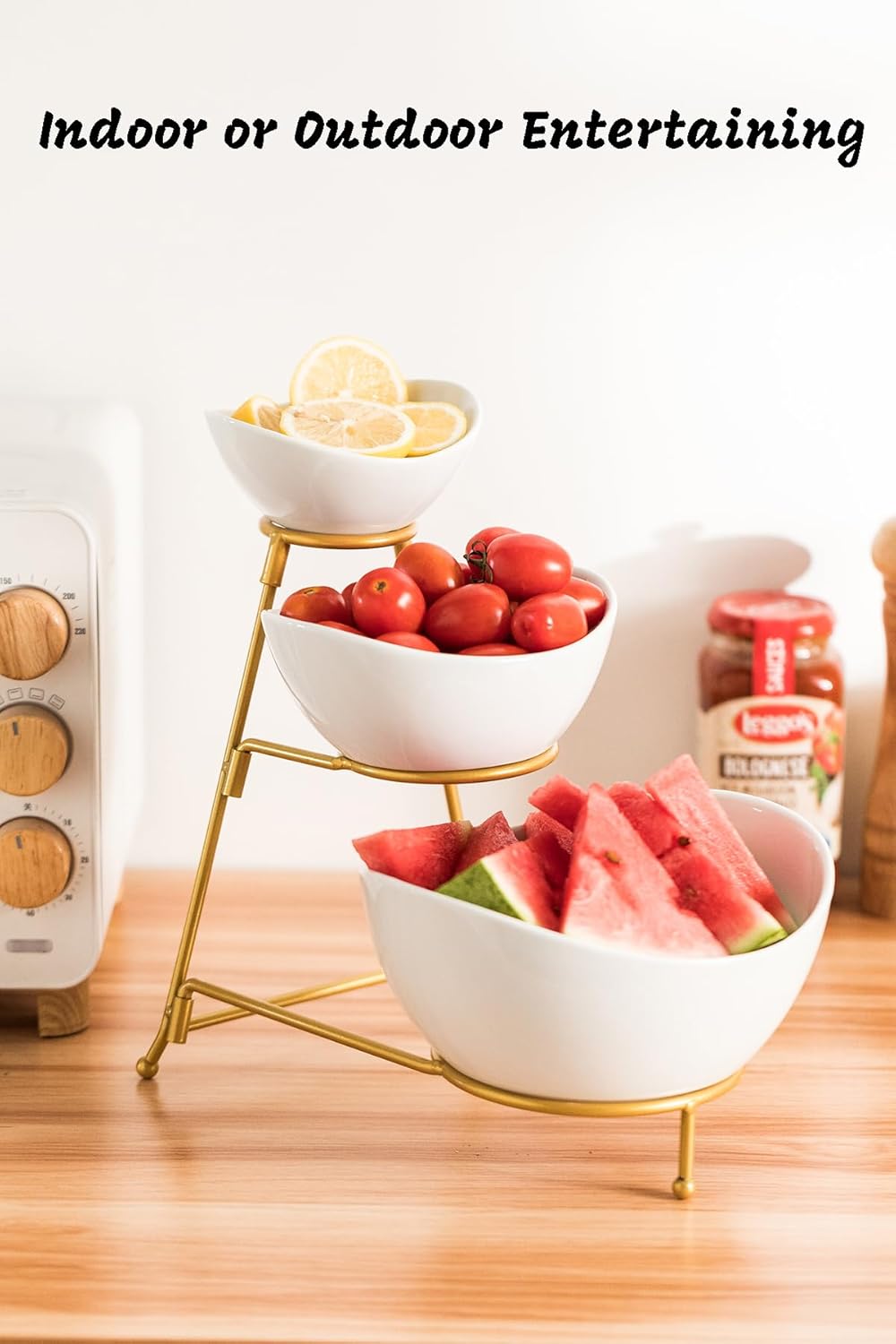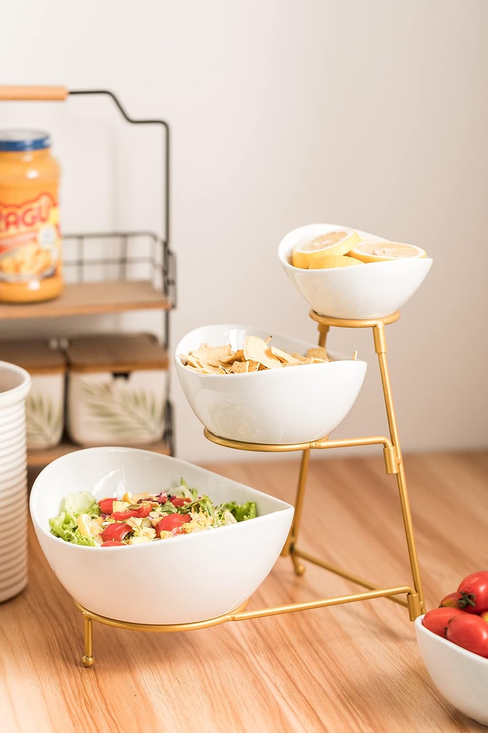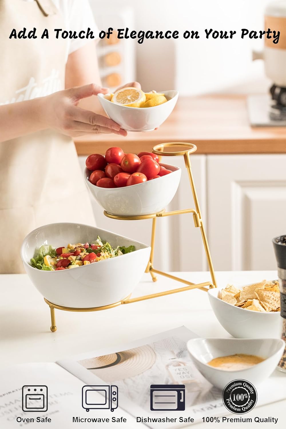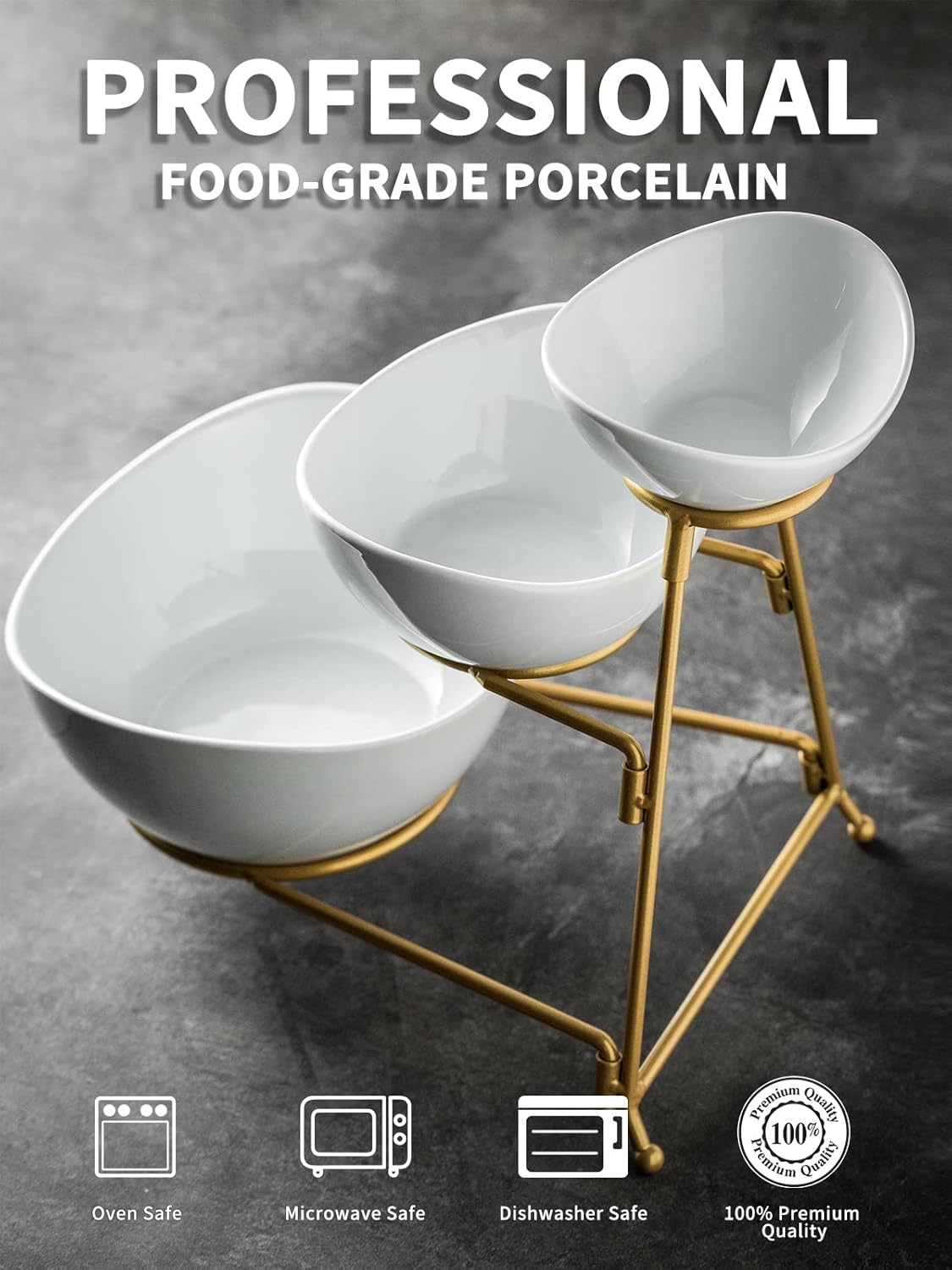 LAUCHUH 3 Tier Serving Stand Serving Dishes for Entertaining Porcelain Oval Bowl Set Tiered Serving Tray for Fruit, Vegetable, Nuts, Salad, Chip Dip Bowl Set for Valentine's Day, Gold quantity