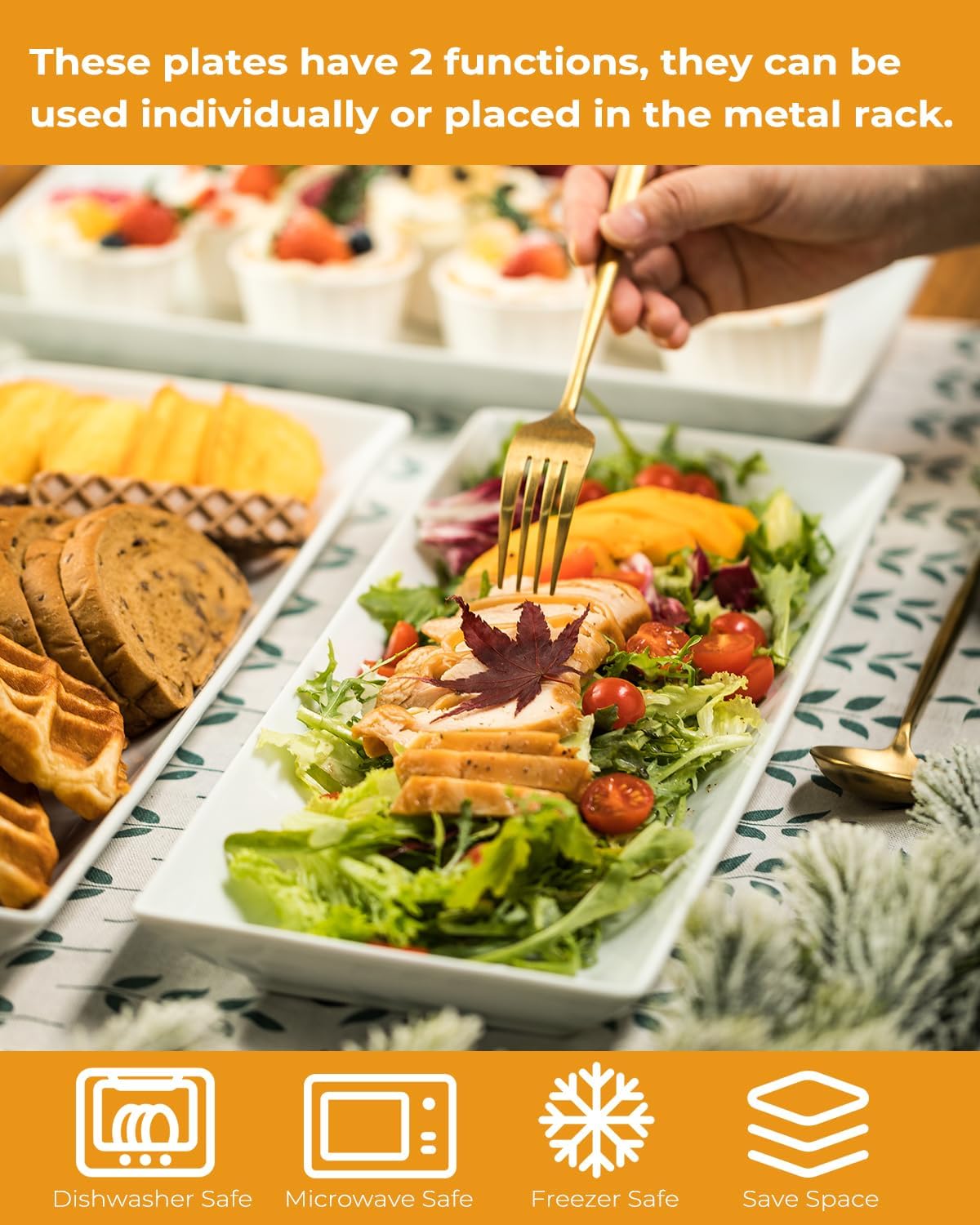 LAUCHUH Large 3 Tier Serving Stand Tiered Serving Trays with Collapsible Sturdier Rack Porcelain Serving Trays and Platters for Fruit Dessert Presentation Valentine’s Day Party Display Set, 14 Inch