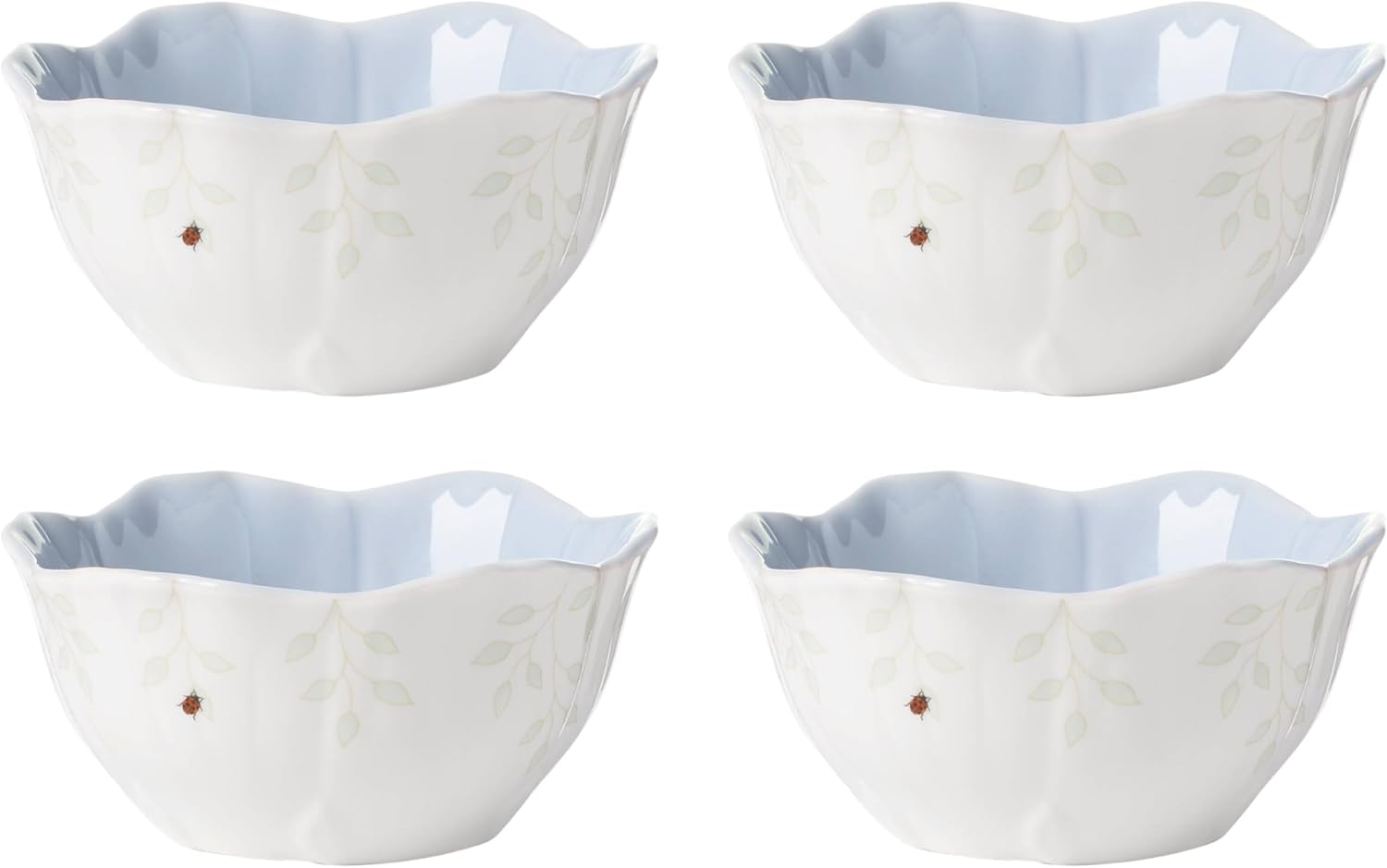 Lively butterflies, dragonflies, and bumblebees buzz about a variety of vibrant flowers on the best-selling Butterfly Meadow pattern. Beloved for over 25 years, this customer-favorite collection also features elegantly scalloped edges on durable white ceramic porcelain, plus plenty of mix-and-match designs and coordinating accessories to bring your whole home into bloom.