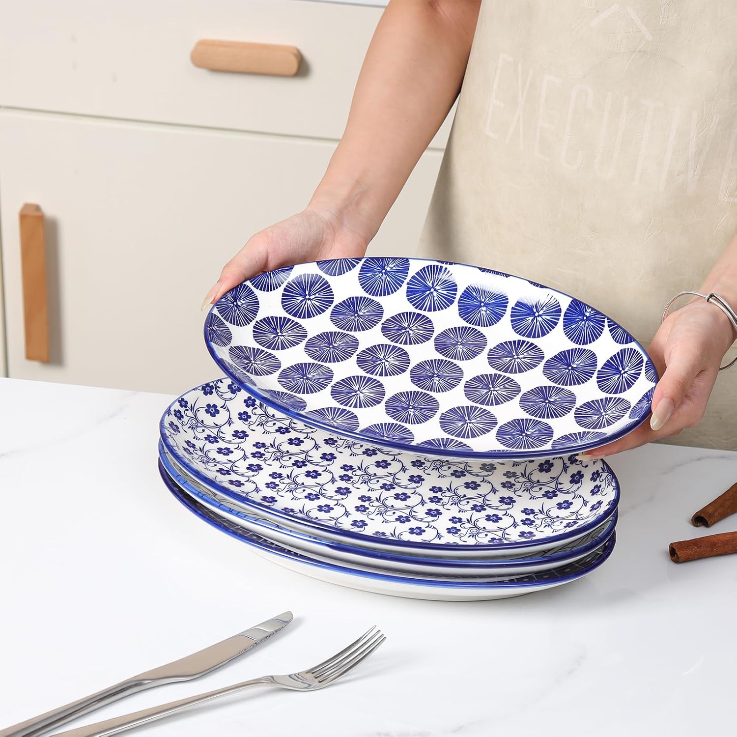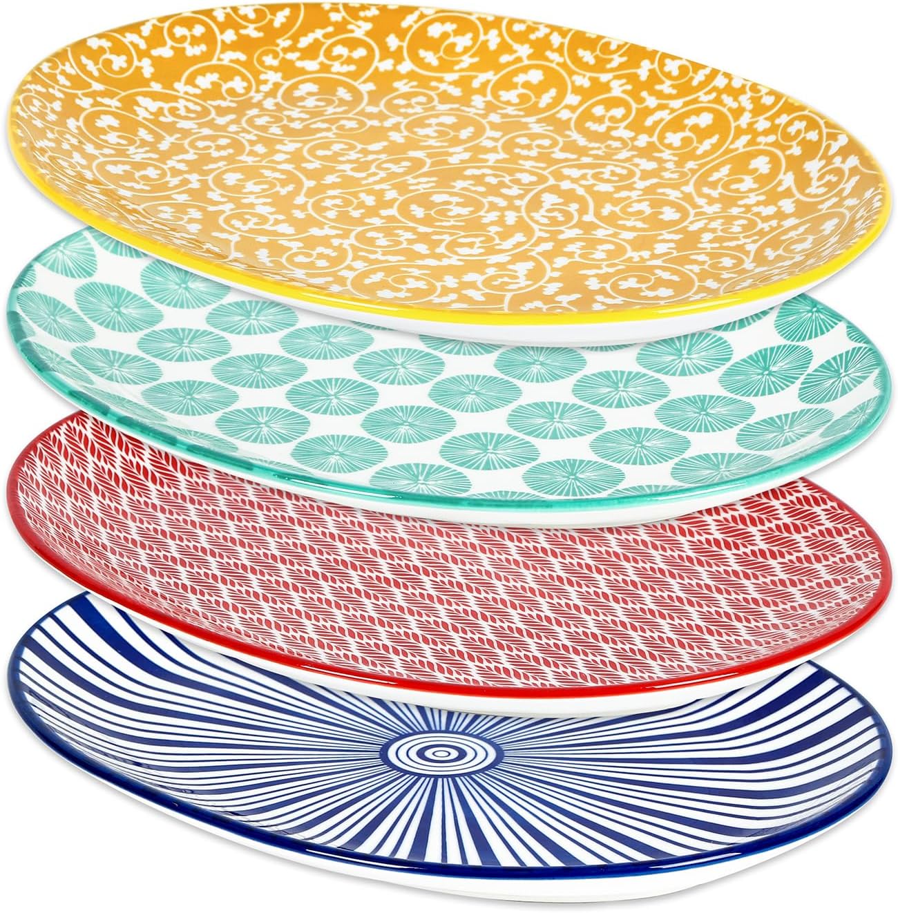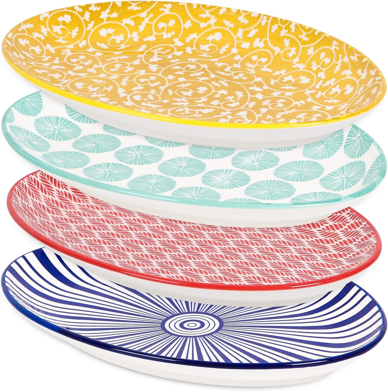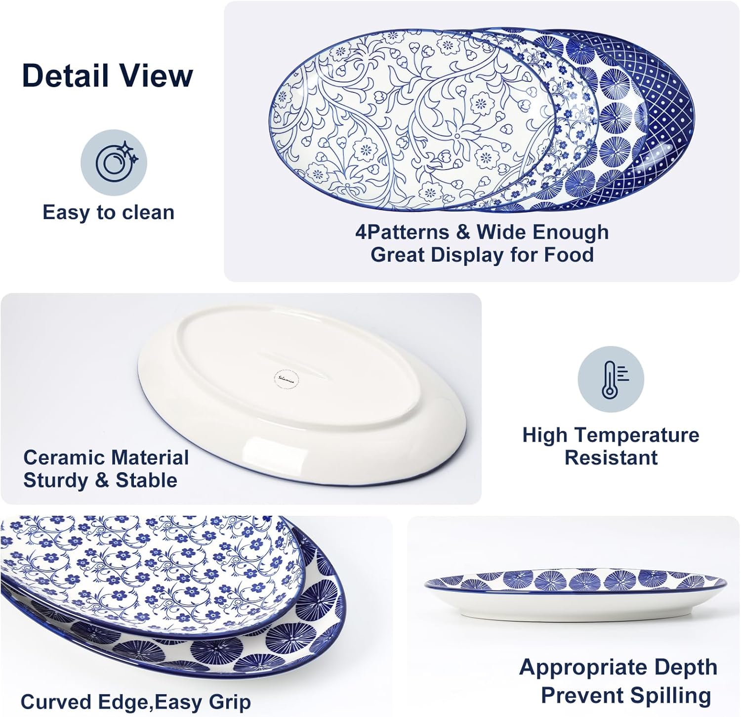 Selamica Serving Platters Ceramic, 12 Inch Serving Dishes for Party Entertaining, Oval Serving Plates for Sandwich, Appetizer, Fruit, Microwave Dishwasher Safe, Set of 4, Vintage Blue quantity
