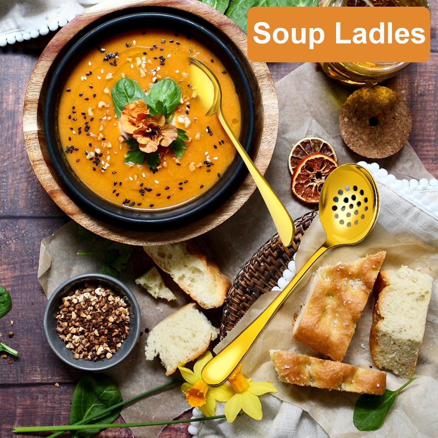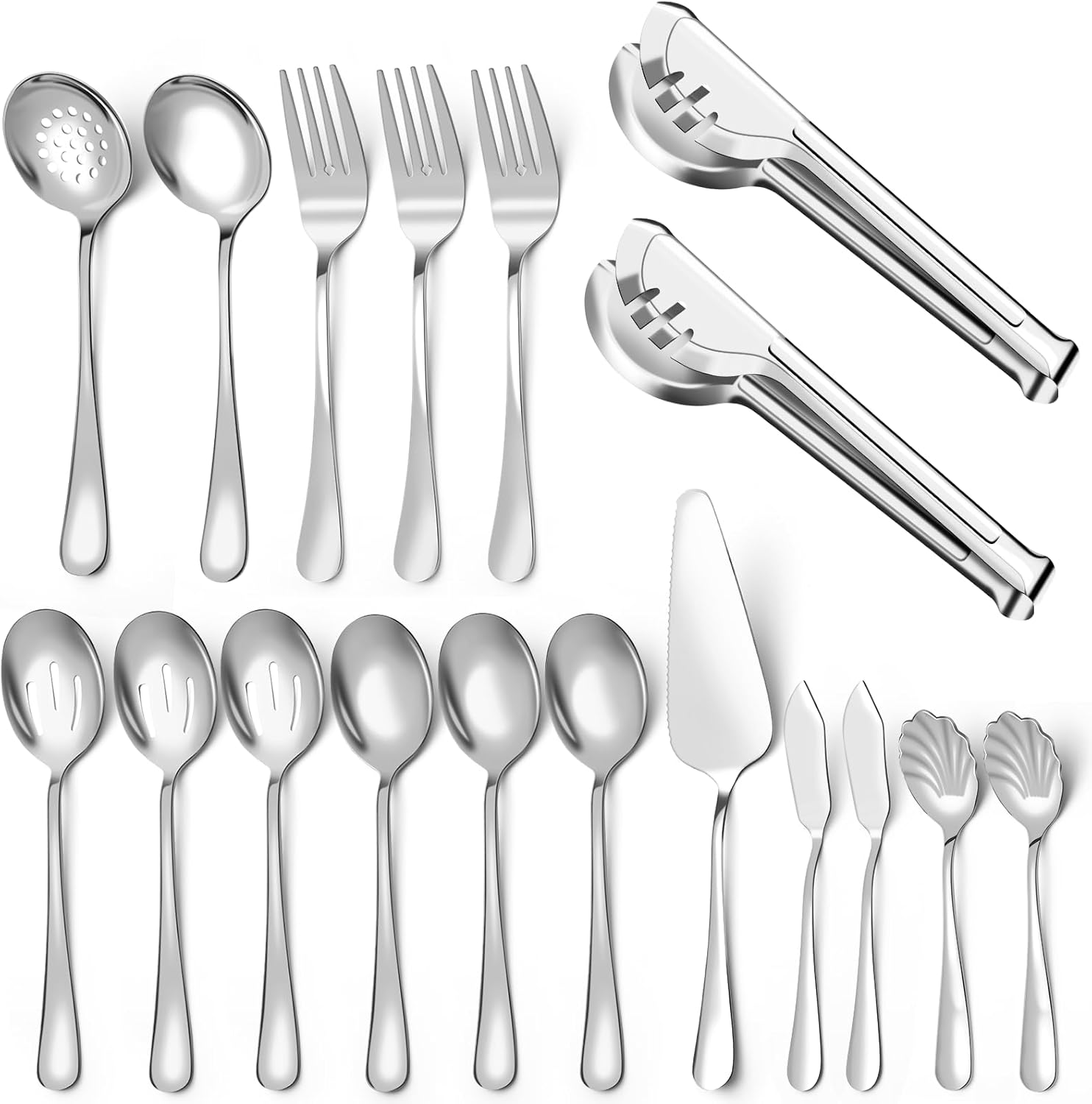 Serving Utensils Set for Buffet, 18 Pack Stainless Steel Serveware, Large Spoons, Slotted Spoon, Forks, Tongs, Butter Knife, Shell Spoons, Soup Ladle, Pie Server, for Party Festival Family, Gold