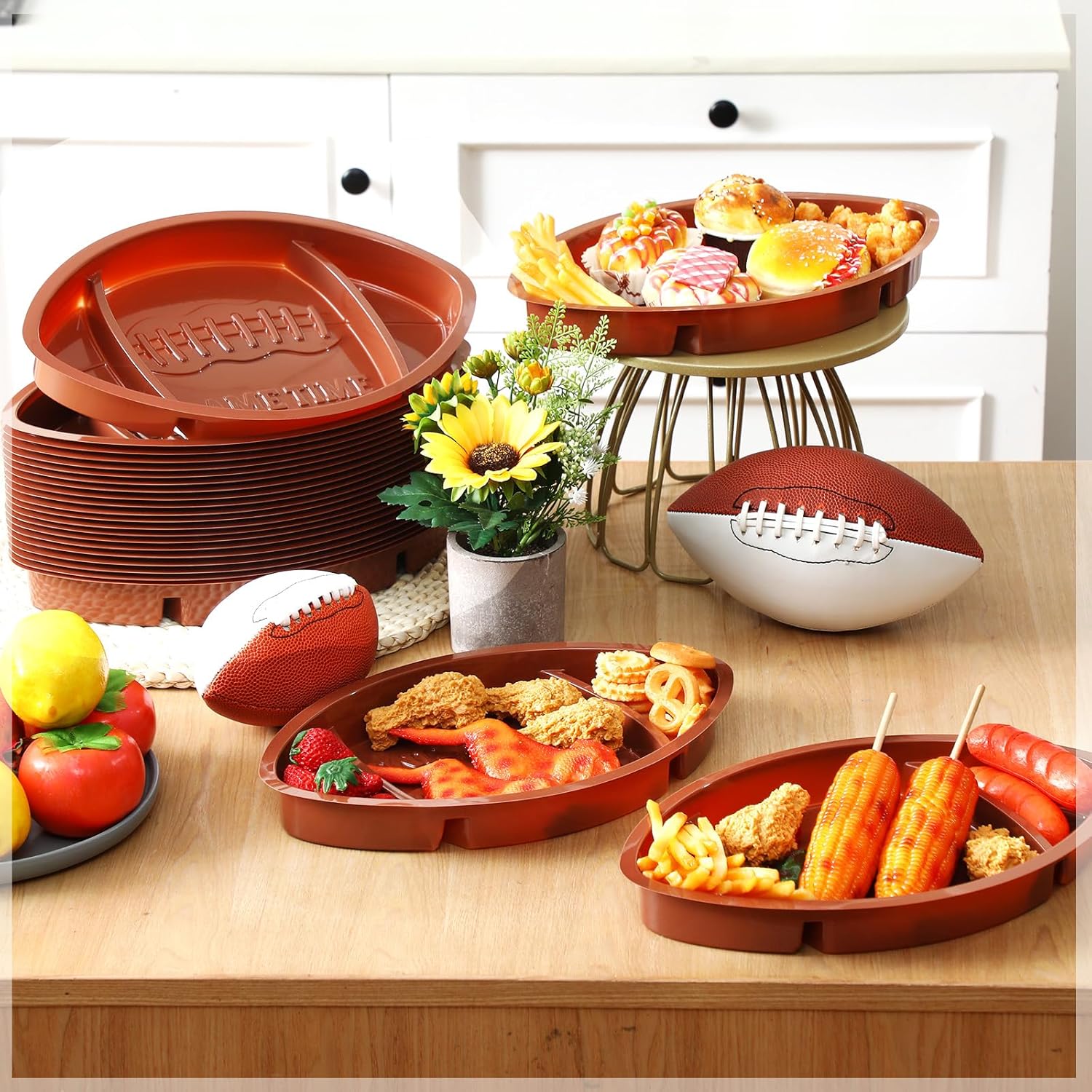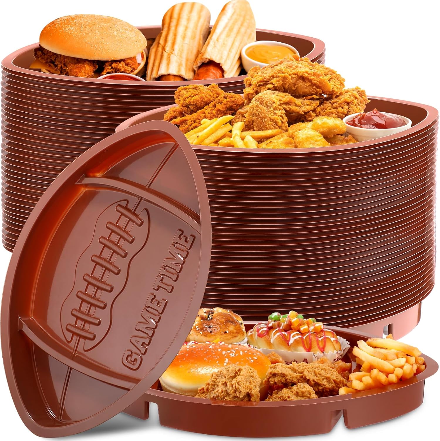 - It's Football Party Time: are you ready to celebrate the game together football party trays can help you do this, there are a total of 24 football plastic snack trays in the package; Support your favorite team together as your guests enjoy these cool football trays