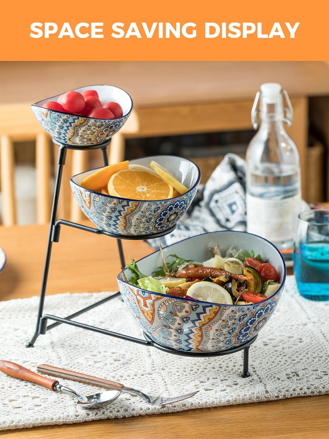 YHOSSEUN 3 Tier Serving Bowls, Serving Dishes for Entertaining Porcelain Serving Trays and Platters Tiered Bowl Set with Collapsible Thicker Sturdier Metal Rack quantity