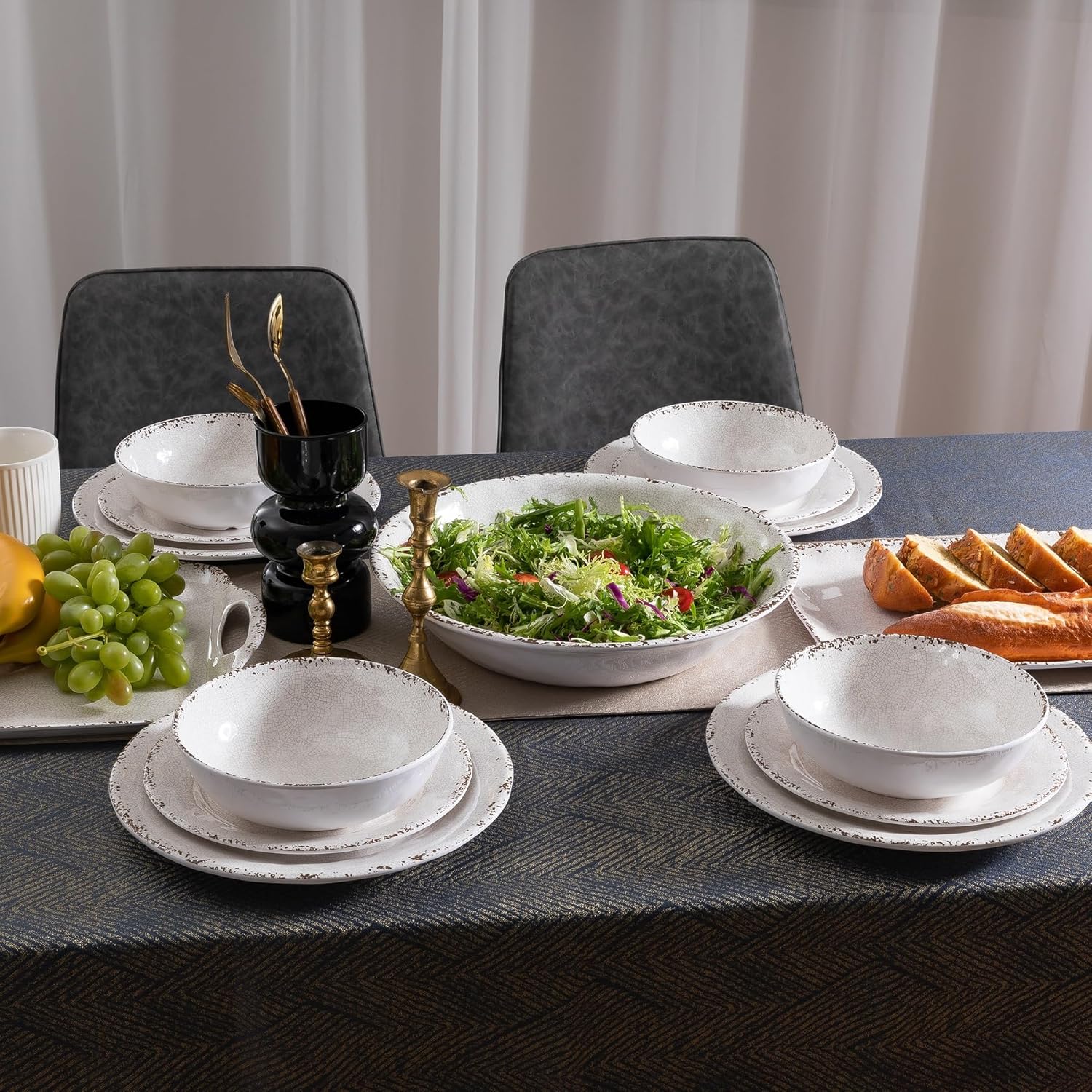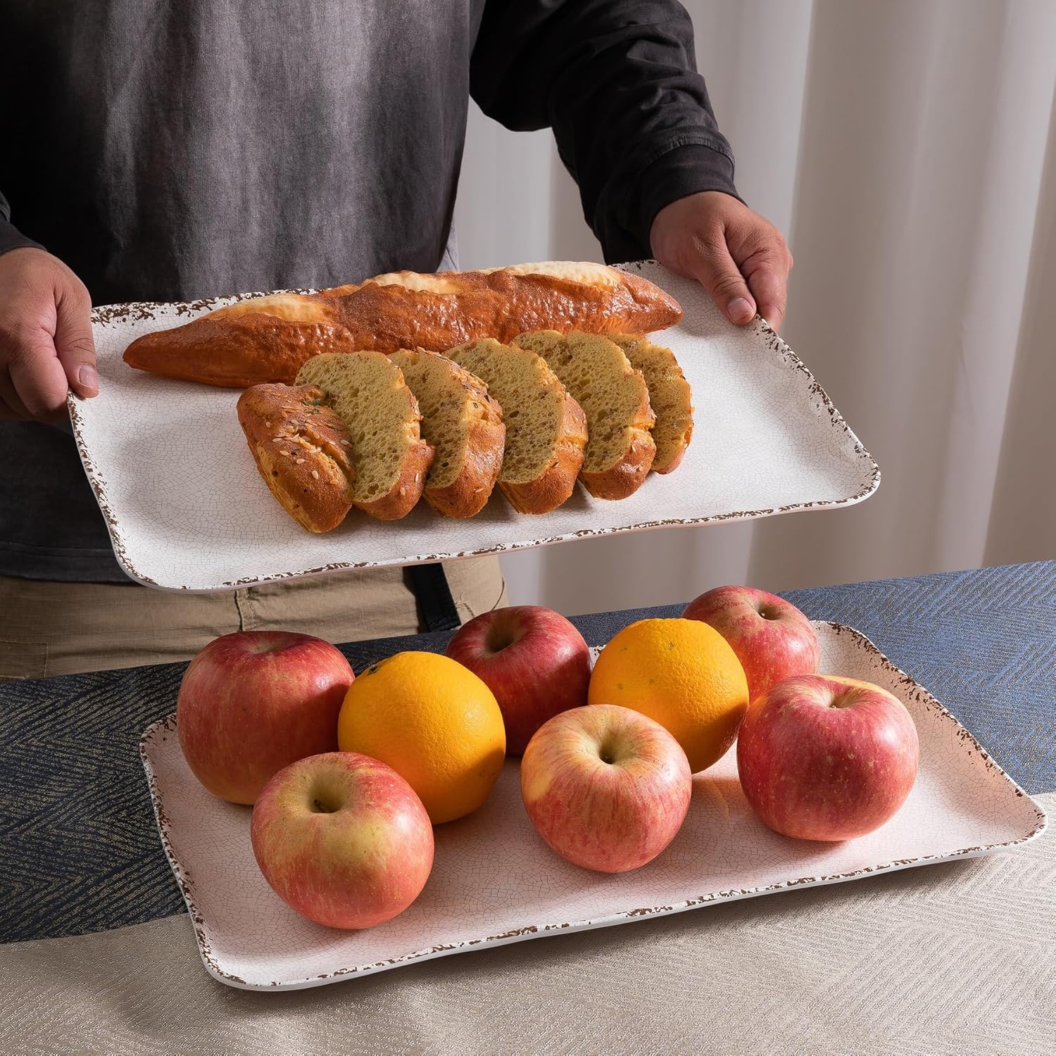 ZAROCRUS Farmhouse Melamine Serving Platters Set of 2, 17″x10″ Large Rectangular Melamine Serving Trays for Serving Food on Parties and Entertaining, Dishwasher Safe. Ivory